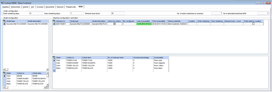 Model configuration | This field shows all models connected to this contract, and when marked, the meter/consumable details are shown in the grid below. |