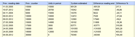 Rows with an absolute difference bigger than “COMPANY_YYY \ CONTRACT \ METER_IMPORT_PERCENT_CHECK” will have a different color in the list and you can also choose to only see those rows