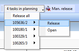 3. Push the button “Man. release” and the system change to “Auto release” and will release all tasks that where changed for more than 10 minutes ago.